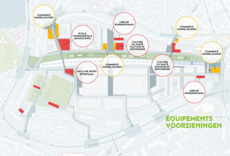 Les études préliminaires ont déterminé les équipements qui sont nécessaires en fonction des nouveaux logements à construire sur le site mais aussi en fonction de déficits existant dans les quartiers environnants. Une superficie totale de 24.500 m² de plancher brut leur a été réservée dans le projet.