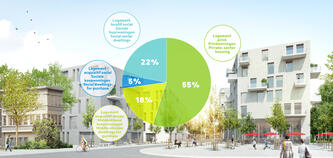 Van de hele site wordt 55 procent van de woningen gebouwd en op de markt gebracht door de privésector; 45 procent wordt gefinancierd door overheidsmiddelen. Ze zijn bestemd als koopwoning voor bewoners met een gemiddeld inkomen (huisvesting citydev.brussels) en een bescheiden inkomen (woningen gebouwd door het Huisvestingsfonds). De sociale huurwoningen worden gebouwd door de BGHM en zijn bestemd voor de Openbare Vastgoedmaatschappijen (OVM) die actief zijn in de gemeenten Schaarbeek en Evere.